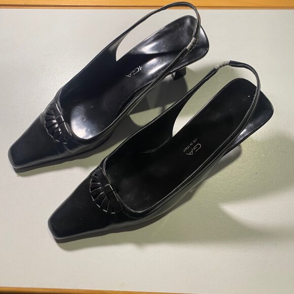 Via Spiga - 8M - Women's Black Heeled Slingback Leather Point Made in Italy