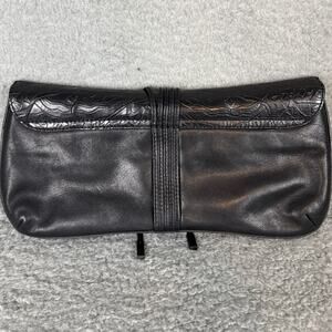 Via Spiga Africa Collection Black Leather Embossed Clutch Purse. Features a sleek design with soft, embossed leather and a magnetic snap closure. Mint condition with no signs of use. Perfect for a sophisticated, timeless "old money" aesthetic.