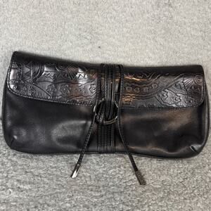 Via Spiga Africa Collection Black Leather Embossed Clutch Purse Magnetic Snap