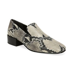 Via Spiga Baudelaire Square Toe Snakeskin Embossed Leather Loafers Women’s Fashion Dress Shoes