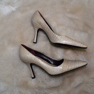 Via Spiga Beige Croc Embossed Stiletto Pumps Size 8 Square Toe Heels