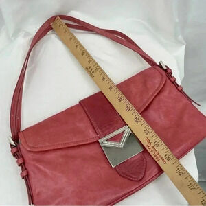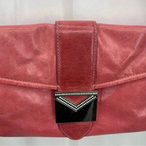 Via Spiga Bejeweled Leather Clutch Purse Pink Snap Close Dbl Adjustable Handles