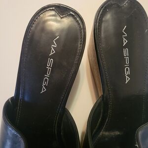 Via Spiga Black Leather Mules with Zipper Detail EUC Minimimist Modern Casual