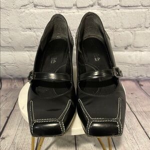 Via Spiga Black Leather Square Toe Mary Jane Heels Sz 7.5