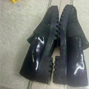 Via Spiga Black Patent Leather Chunky Platform Slip on Loafers Size 9