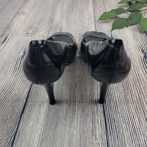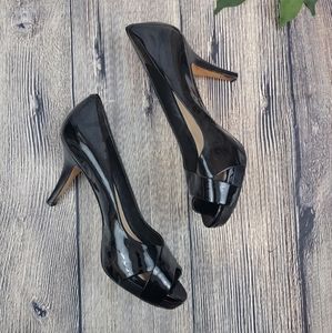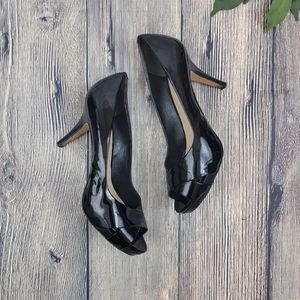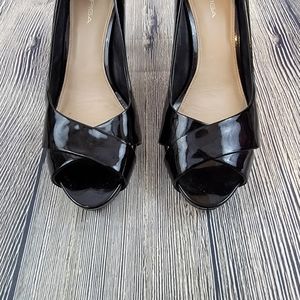 Via Spiga Black Patent Leather Peep Toe Platform Heels