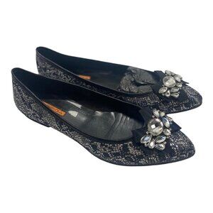 Via Spiga Black Sequin Flat Holiday Shoes V-Bosh 11319020 Size 8.5 New in Box