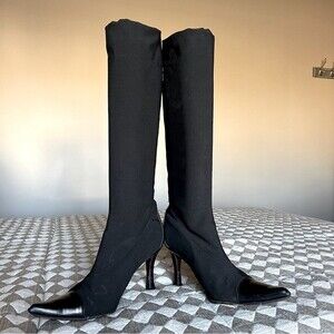 Via Spiga Black Stretch Fabric Heeled Boots with Pointed Toes Women’s Size 8