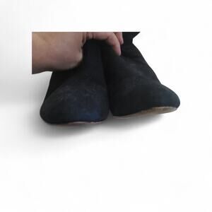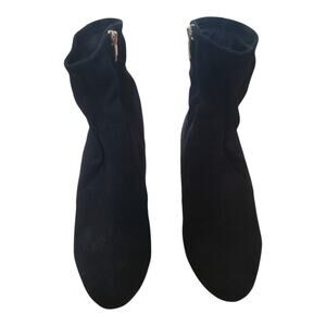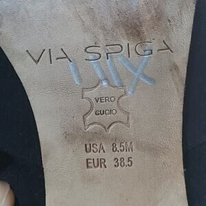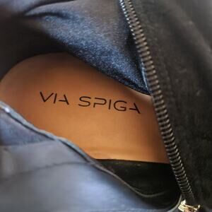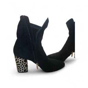 Via Spiga Black Suede Ankle Booties 8.5M Gold Metallic Block Heel Vero Cuoio