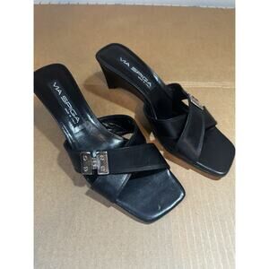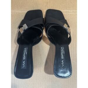 Via Spiga Black Wedges Women's Size 8 Peep Toe Sandals Slides Work Wedding