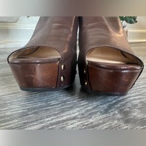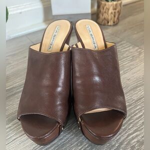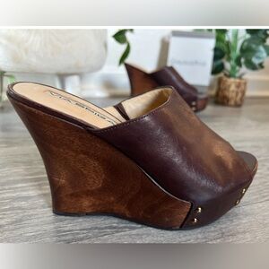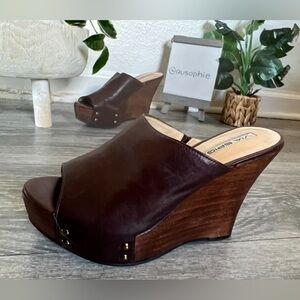 Via Spiga Brazil Y2K Chocolate Brown Leather Platform Wedge Mules. Size 6