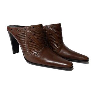 Via Spiga Brown Leather Heel Mules With Studded Detailing & Pointed Toe Size 7M