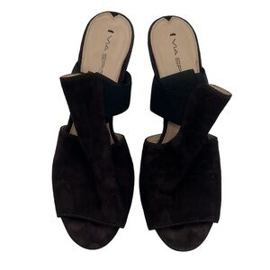 Via Spiga Brown Suede Elastic Band Wedge Sandals Size 9.5 Women's