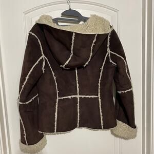 Via Spiga Brown Suede Winter Jacket Sherpa Lined Button Up