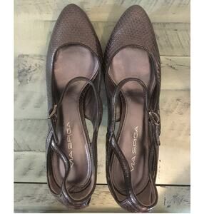 Via Spiga Designed in Italy 7 1/2 Med Mirrored 3 1/2" Heel Silver Platinum Snake