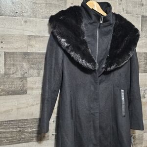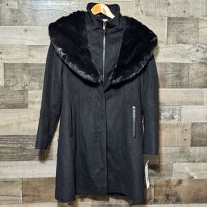 Via Spiga Faux Fur Collar Wool Trim Coat