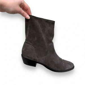 Via Spiga Fora Suede Leather Slouch Heeled Ankle Bootie Graphite Grey Size 8.5