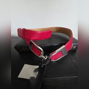 Via Spiga Genuine Leather Red Belt Adjustable Womens Size M/L Hook Front NWT