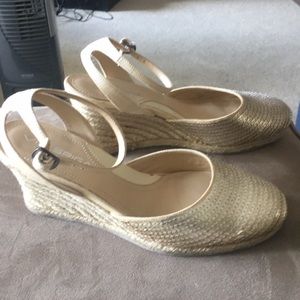 Via Spiga gold color Espadrille with ankle strap. In good condition. 3 inch heel with 9 inch insole. Size 5.5. Very comfortable.