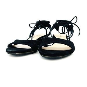 Via Spiga Heels Sandals Strappy Black Suede Size 5.5 Low Block Heel Vibram Sole