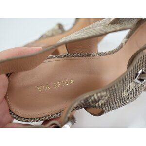 Via Spiga Italy Women's Sandal Size 9 Round Heel Strappy Tan Snake Print Leather