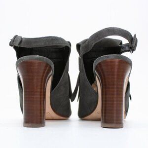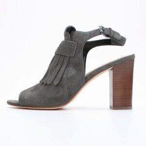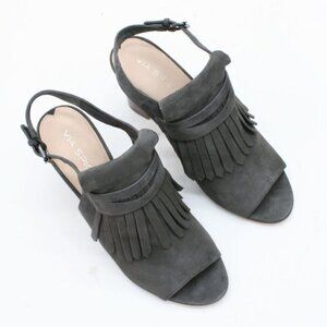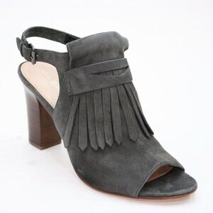 Viaa Spiga Ladies 11 Kilty Peep Toe Slingback Sandals Gray Nubuck Suede 4" Heel