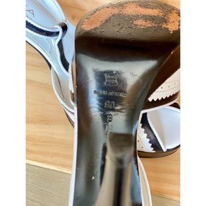 Via Spiga 100% Leather B&W Spectator T Strap Peep Toe Platform Sandal Heels Size 9 Made in Italy