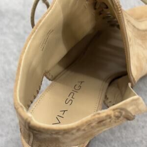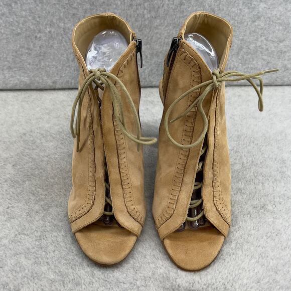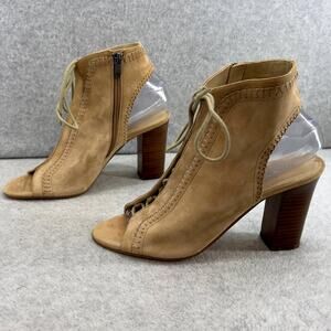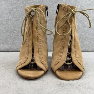 Via Spiga Leather -Heel-Peep-Toe Lace Up Ankle Booties Sandal- Tan - Women 8.5 M
