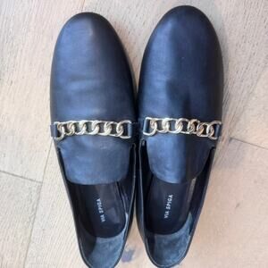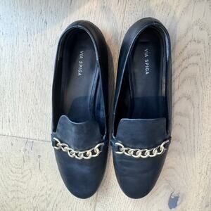 Via Spiga Loafer Yania Gold Chainlink Black Leather Size 8