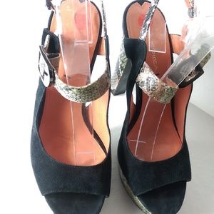 Marie Slingback , Black Heels Suede and Snake Orange Camo Platform
