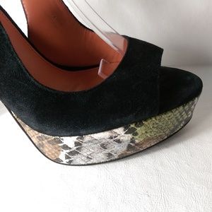 Via Spiga Marie Black Platform Chunky Heel Snake Platform Orange Camouflage