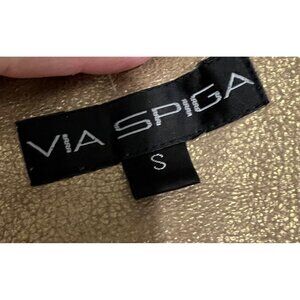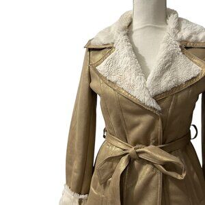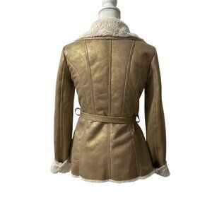 Via Spiga Metallic Gold Faux Leather Belted Moto Glam Sherpa Jacket S