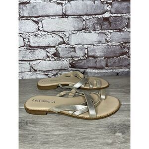 Via Spiga Metallic Silver Leather Toe Post Slides Sandals Women’s Sz 10M US/40EU