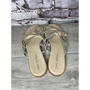 Selling Via Spiga Metallic Silver Leather Toe Post Slides Sandals Women’s Sz 10M US/40EU