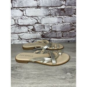 Selling Via Spiga Metallic Silver Leather Toe Post Slides Sandals Women’s Sz 10M US/40EU