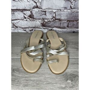 Via Spiga Metallic Silver Leather Toe Post Slides Sandals Women’s Sz 10M US/40EU