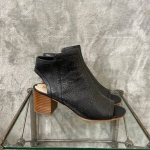 Via Spiga Open Toe Block Heel leather Ankle Booties women’s Size 10 Black