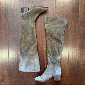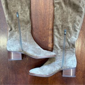 Via Spiga Ophira Tan Suede Over the Knee Boots, Stacked Heels, Size 8.5