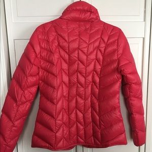 Thin and not to warm for spring! Pack it away in the pouch that's attached. Great pink color, comfortable and slimming. Worn very little and has no signs of wear and tear.