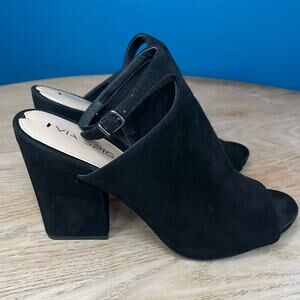 Via Spiga Prim Block Heeled Sandal Black Suede Mule Block Heel Women’s Size 9.5