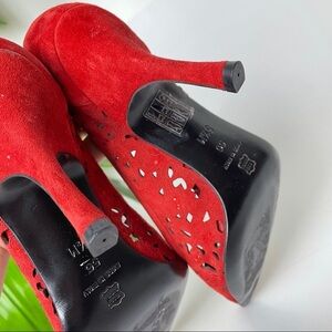 Via Spiga Red Perforated Suede Leather Pumps 5.5