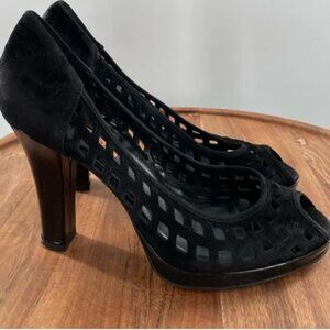 Via Spiga Suede Leather Heels Pumps Cut Out Details Black 6.5 peep toe