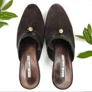 Via Spiga Suede Wedge Heel Mules Brown 7 M
