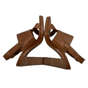 Via Spiga Tan Leather Square Toe Block Heel Sandals Size 6 Women’s