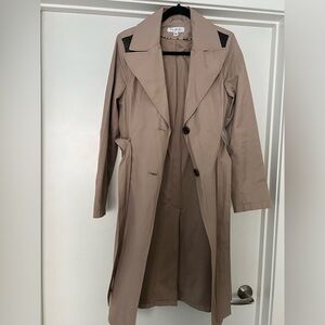 Trench coat with leather-like details