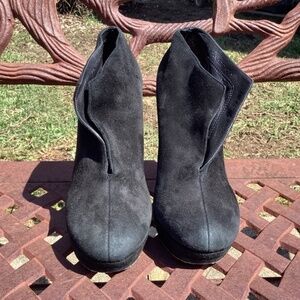 Via Spiga Vero Cuoio Platform Slip On Black Suede Leather Round Toe Ankl…