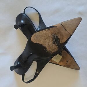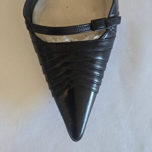Via Spiga Vintage Heels, Blk Patent/Blk Leather Point Toe, Slingback Pump, 6.5