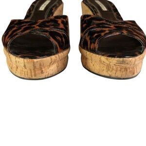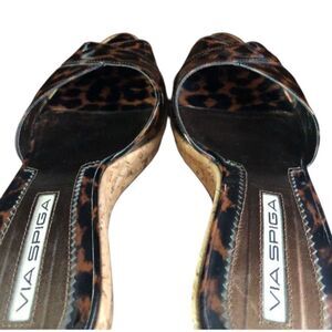 Via Spiga Wedge Platform Mules Patent Leather Tortoise Shell Cork 3.5” Slip On 9