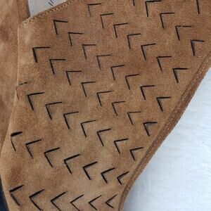 Via Spiga Wedge Sandal Women 7M Brown Suede Laser Cut Perforated Peep Toe Ankle