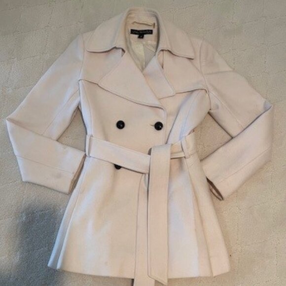 • LIKE NEW --- Via Spiga Winter White Peplum Belted Wool Coat! This was never my primary coat, so it’s extremely gently used/pre-loved.